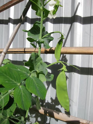 How sad - all that lovely soil and devoted watering (too much, perhaps?) produced these pathetic things with NOT A SINGLE BEETROOT AMONG THEM. These were one of the few winter vegetables I planted. At least the snowpeas have had the decency to provide us with something edible: